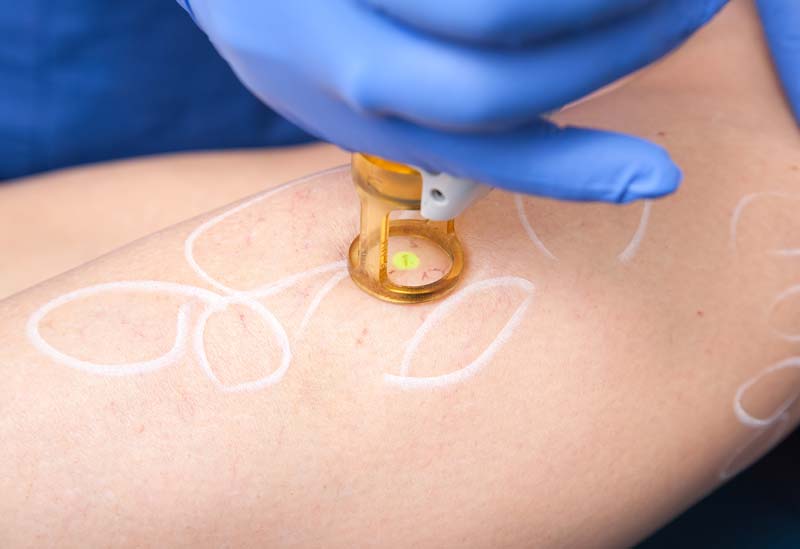 Apres application d’une crème anesthésiante (1 heure ou plus avant avec Emla ou Pliaglis ), le tir laser est réalisé au point par point après mise de protection oculaire spécifique.