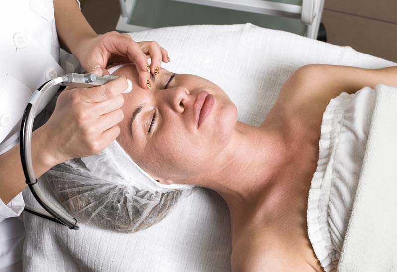 La peau parfaitement démaquillée est désinfectée avec un antiseptique adapté